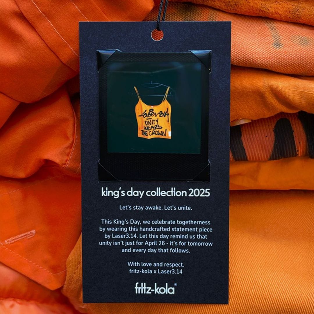 Wat een fijn smart-media idee: fritz-kola lanceert een unieke collectie - in samenwerking met artiest Laser 3.14 - speciaal voor Koningsdag, met kringloopwinkels als distrubitiekanaal.
