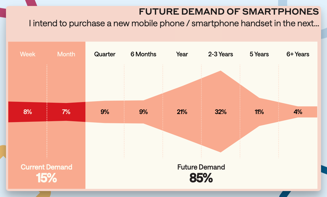 - Current Demand - mensen die nú in market zijn, doorgaans zo'n 5% tot 25% van je doelgroep, en;