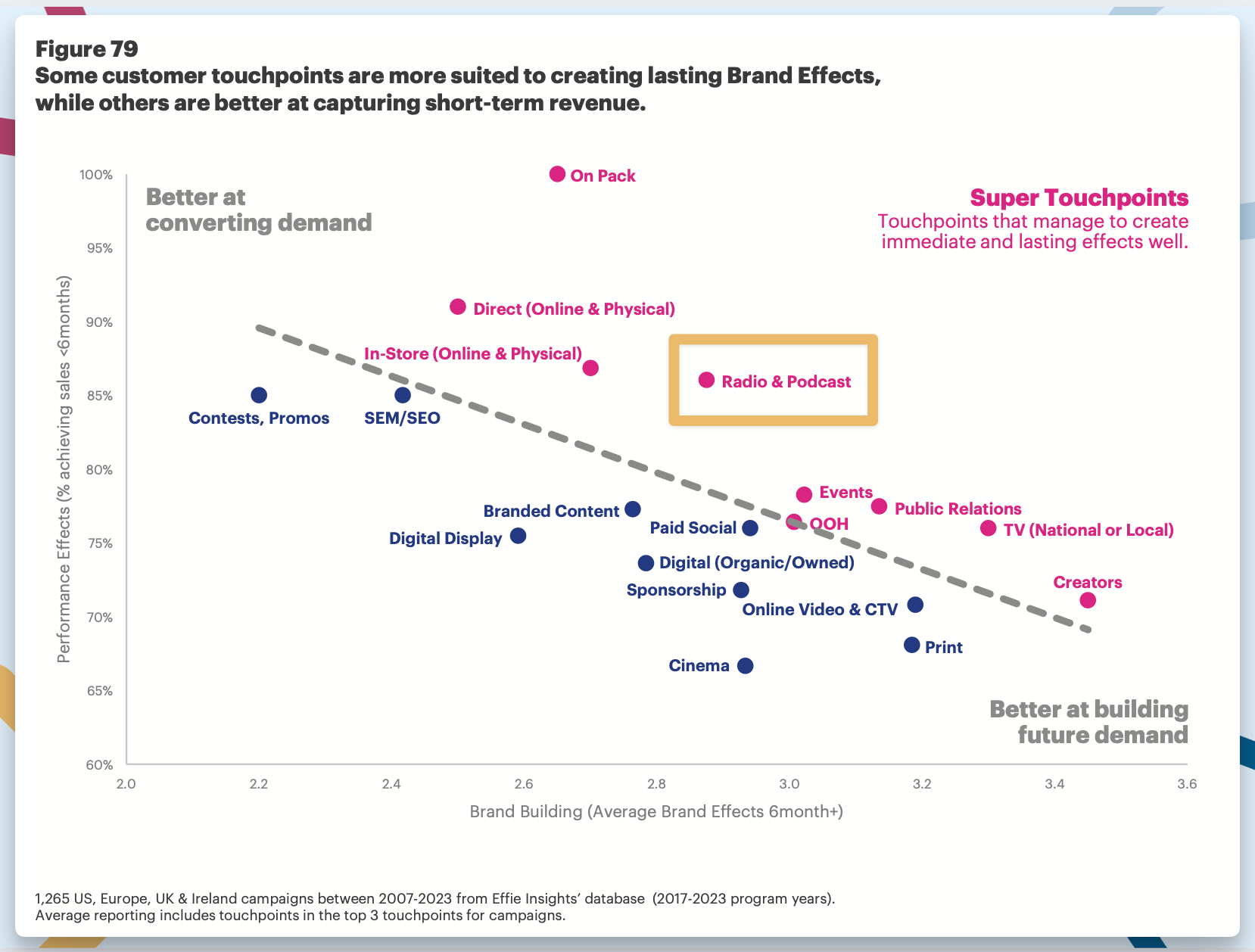 Maar wat er wel uitsprong was zijn verwijzing naar het Creative Dividend stuk - waar je over las in de vorige editie van deze nieuwsbrief - waarin terugkomt dat Radio en Podcasts goed werken voor Current Demand en Future Demand.
