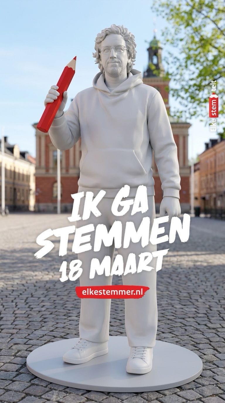 De vetste manieren van het integreren van AI, is vooral niet benoemen dat je AI gebruikt. De Nederlandse campagne Elke Stemmer heeft als doel om 't stemmen aan te jagen voor de Gemeenteraadsverkiezingen op 18 maart. En omdat elke stemmer een standbeeld verdient, maak je die gewoon op de actiesite.