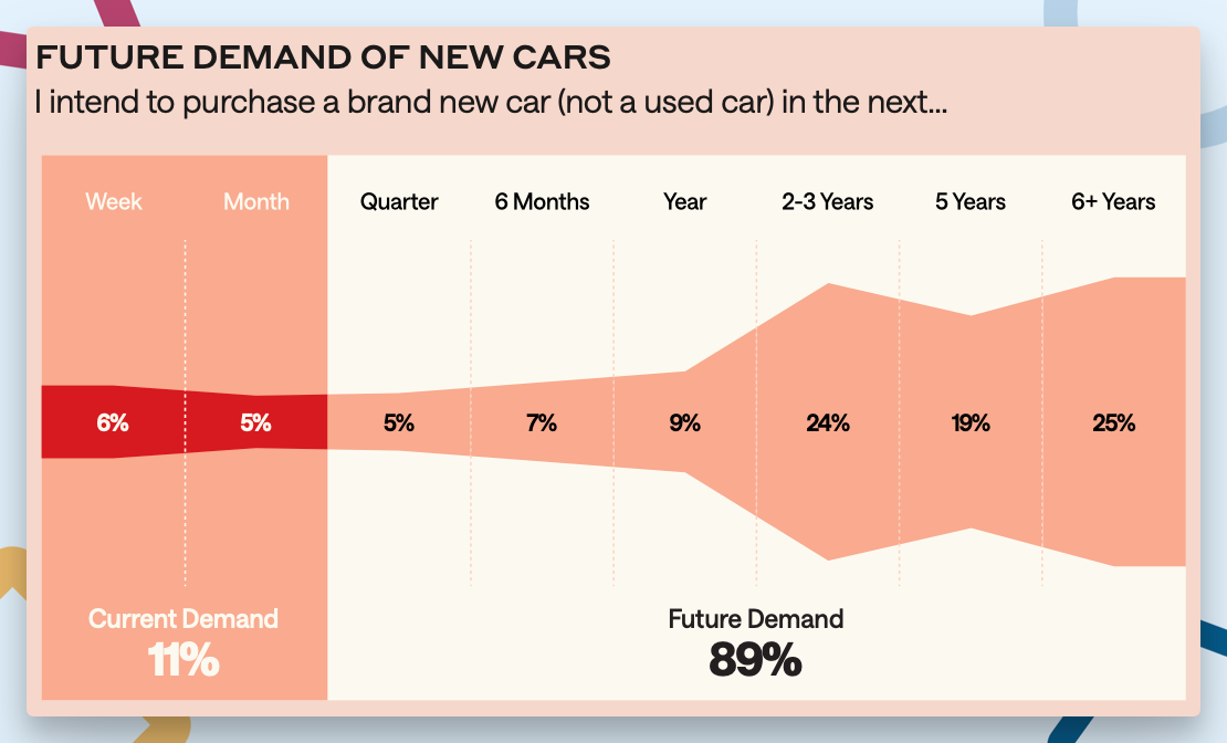 - Current Demand - mensen die nú in market zijn, doorgaans zo'n 5% tot 25% van je doelgroep, en;