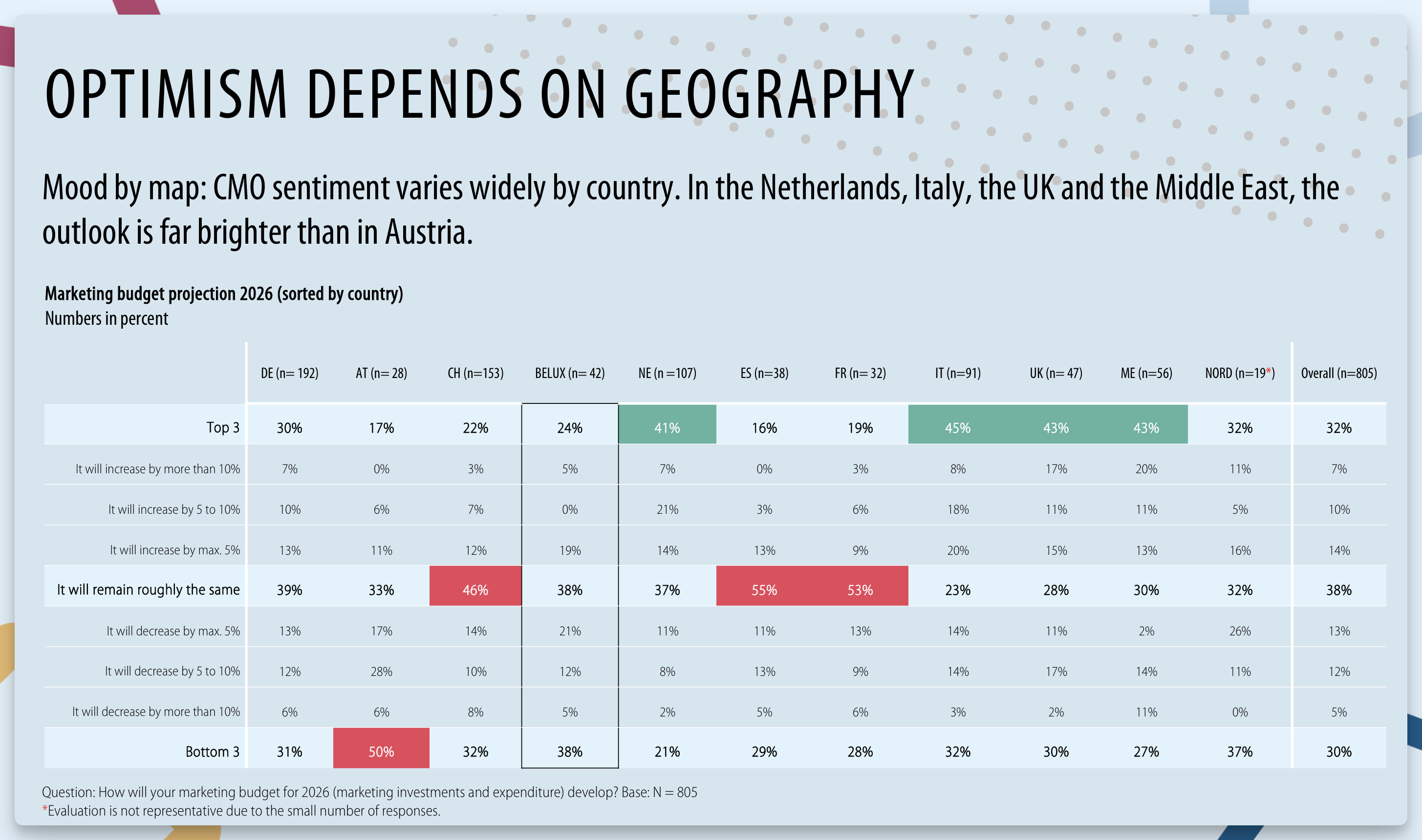 - 72% van de CMOs wil het marketingbudget verhogen in 2026
