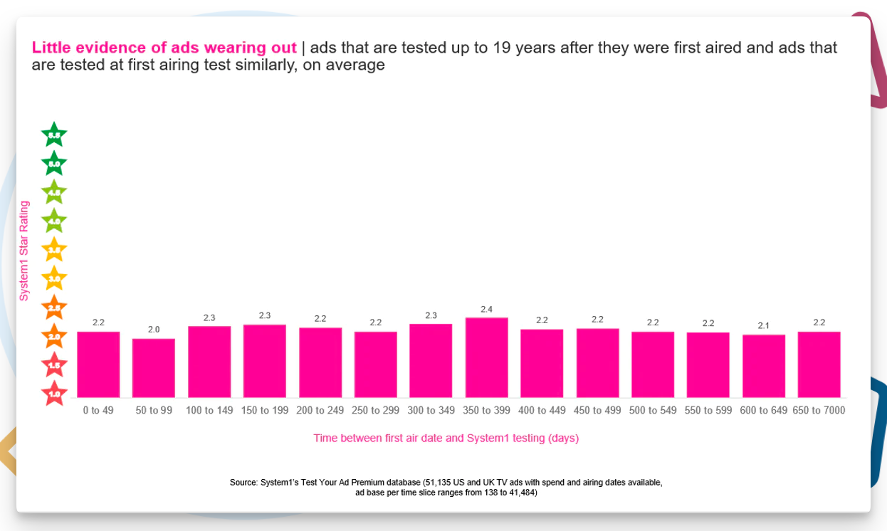 Slim onderzoek naar 'wear-out' effect, het moment dat je consument je spot beu is, laat zien dat je een campagne prima kan draaien. Ook een paar jaar ná originele datum.