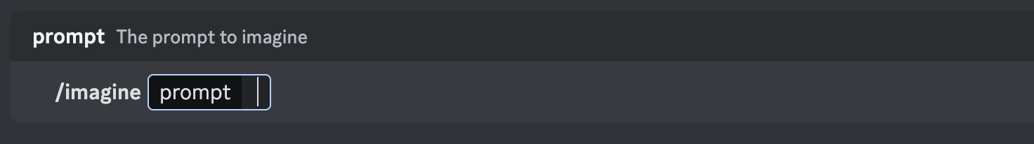 De magie begint met /imagine. Die voer je in als tekst in Discord: